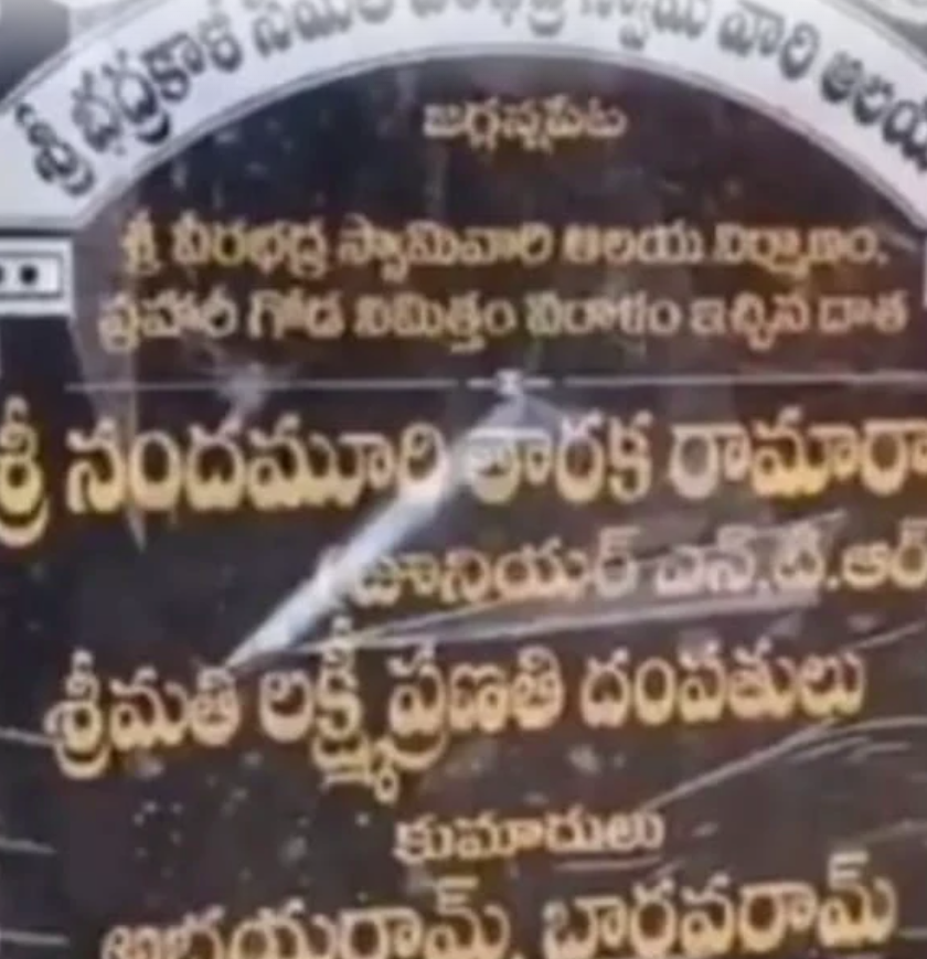 దీంతో గుడి బయట దాతల పేర్లను రాళ్లపై రాయించగా అందులో ఎన్టీఆర్ ఫ్యామిలీ పేర్లు కూడా ఉన్నాయి. మరీ ముఖ్యంగా భార్గవ్ రామ్ – అభయ్ రామ్ పేర్లు కూడా అక్కడ రాయడంతో ఫాన్స్ ఫుల్ ఖుషి అవుతున్నారు . సోషల్ మీడియాలో ఈ ఫొటోస్ ట్రెండ్ చూస్తున్నారు అభిమానులు. దీంతో సోషల్ మీడియాలో సినిమా ఇండస్ట్రీలో నాన్నకు మించిన రేంజ్ లో భార్గవ్ రామ్ – అభయ్ రామ్ పేర్లు ట్రెండ్ అవుతున్నాయి..!!